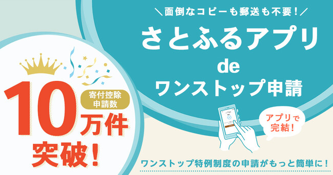 ワンストップ特例制度の申請がオンラインで完結する「さとふるアプリdeワンストップ申請」開始約1か月で寄付控除申請数が10万件以上に