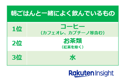 ■朝ごはんと一緒によく飲んでいるもののトップは「コーヒー(カフェオレ、カプチーノ等含む)」