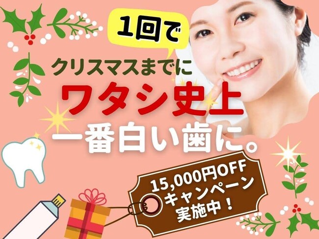 なんと17,500円オフ!【クリスマスまでに一回で白い歯になるホワイトニング★大幅割引キャンペーン実施中】-東京のホワイトニング専門歯科ホワイトマイスター