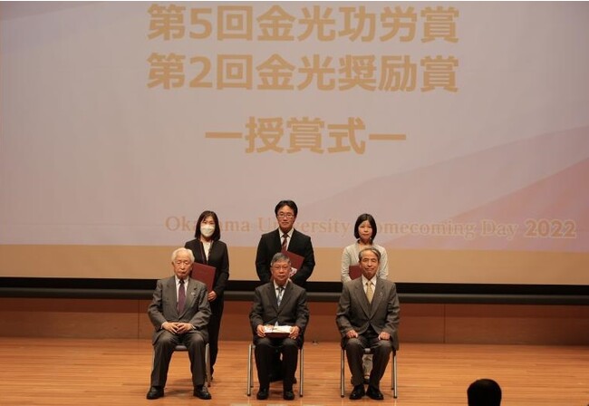 国立大学法人岡山大学(本部:岡山市北区津島中、学長:槇野博史)は、「岡山大学ホームカミングデイ2022」の行事の一環として、2022年10月22日に「金光功労賞授賞式、金光奨励賞授賞式」を本学津島キャンパスの創立五十周年記念館金光ホールにて執り行いました。
