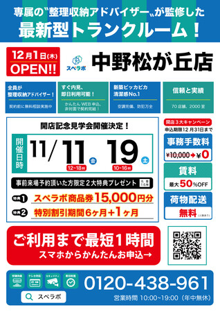 オープンに合わせ11月11日(金)、19日(土)に見学会を実施しますので、ぜひ【スペラボ・中野松が丘店】にお越しくださいませ。