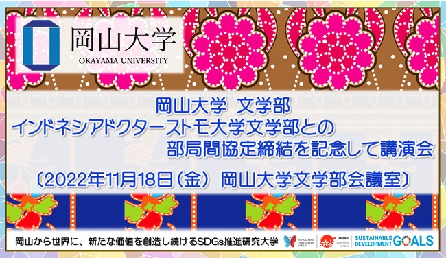 【岡山大学】文学部「インドネシア ドクターストモ大学文学部との協定締結記念講演会」〔11/18金, 岡山大学津島キャンパス〕