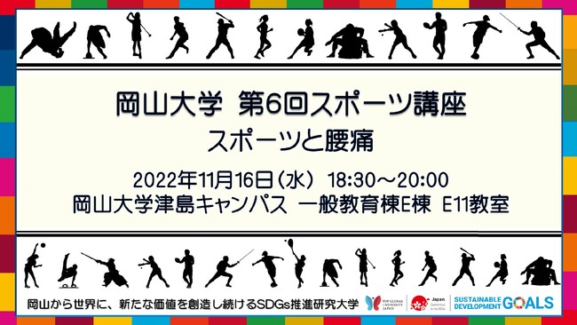 【岡山大学】第6回スポーツ講座「スポーツと腰痛」〔11/16水,岡山大学津島キャンパス〕