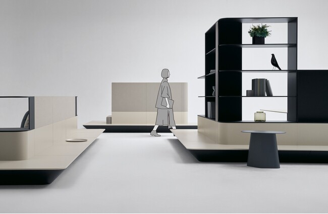 すぐに情報共有ができるチームの拠点となる場です。ソファ、ミーティングテーブル、シェルフを組み合わせて、チームでの打ち合わせや個人作業を行うことができます。出入りがしやすいオープンな設えで、チームのメンバーが気軽に立ち寄ることができます。メンバーそれぞれの拠り所となることで、チームの一体感を高めます。