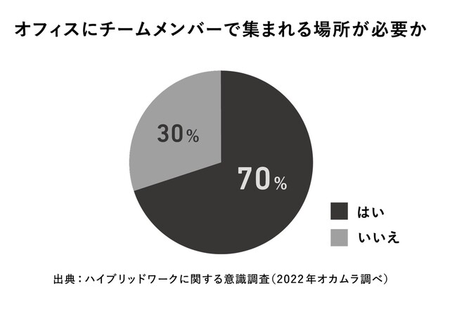 ※ハイブリッドワークに関する意識調査。2022年にオカムラが実施した、首都圏(東京都、神奈川県、埼玉県、千葉県)、中京圏(愛知県、岐阜県、三重県)、関西圏(大阪府、京都府、兵庫県)、福岡県に勤務地がある、従業員100名以上の企業に勤める正社員1000名を対象としたアンケート調査