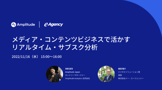 ユーザー行動分析No.1プラットフォームAmplitudeと企業のデータドリブンマーケを牽引するイー・エージェンシーが、メディア・コンテンツビジネスで活かすリアルタイム・サブスク分析について解説します