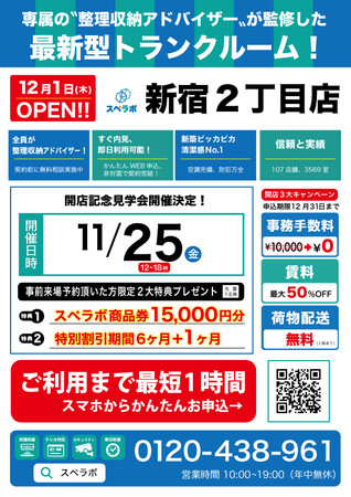 オープンに合わせ11月25日(金)に見学会を実施しますので、ぜひ【スペラボ・新宿2丁目店】にお越しくださいませ。