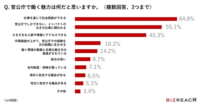 Visionalグループの株式会社ビズリーチ(所在地:東京都渋谷区/代表取締役社長:酒井哲也)が運営する、即戦力人材と企業をつなぐ転職サイト「ビズリーチ」は、官公庁の仕事に関するアンケート※1を実施しました(有効回答数:758)。