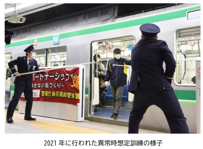 今回は、2022年6月に東新宿駅で発生した車内トラブルを踏まえ、「駅出発後、車内の複数箇所にて非常通報器が鳴動したため、運転士が列車を非常停止。列車は所定停止位置より10m進行したところで停車。車内では不審者が刃物を振り回す事象が発生。」という想定のもと、乗務員及び駅社員による初動対応、お客様の避難誘導、警察・消防、本社各部門との連携訓練等を実施します。