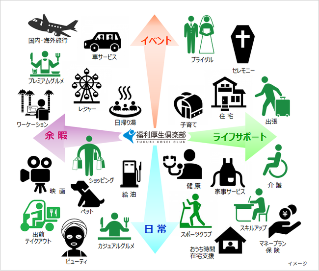 さらに、ヘルスケアサポート・スポーツジムなどへの利用強化はもちろんのこと、健康経営の推進支援など、様々な時代のニーズにお応えできるサービスをご用意。人事総務・労務担当者の業務負荷軽減を目指すとともに、従業員エンゲージメントの向上につながるソリューションをお届けいたします。