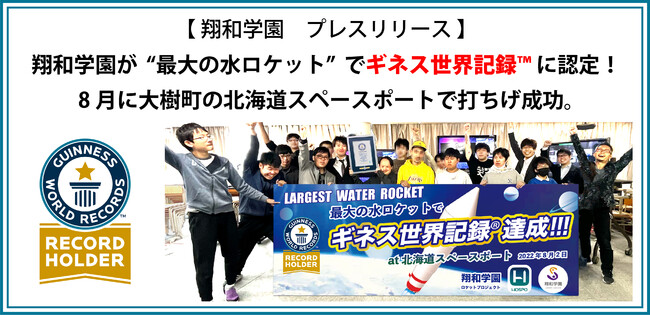 【翔和学園 プレスリリース】翔和学園が“最大の水ロケット”でギネス世界記録(TM)️に認定!8月、大樹町の北海道スペースポートにて打ち上げ成功