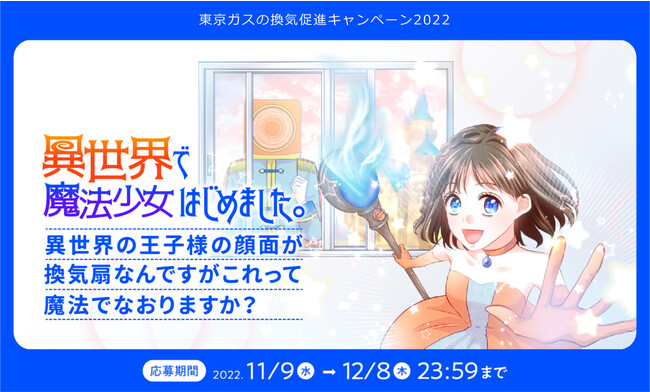 ・キャンペーンタイトル:東京ガスの換気促進キャンペーン2022『異世界で魔法少女はじめました。異世界の王子様の顔面が換気扇なんですがこれって魔法でなおりますか?』