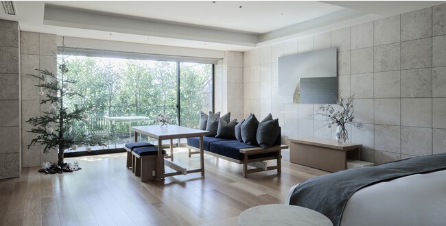 自分へのご褒美や大切な方への贈り物として、大きな窓から差し込む柔らかな日光、テラスの緑、客室内のアートに囲まれ、日常の喧噪を忘れる“癒し”のクリスマスを満喫していただけます。また、この客室専用のテラスにはイルミネーションを施し、夜にはプライベートな空間で、シャンパンやフルーツの盛り合わせとともにお過ごしいただけます。