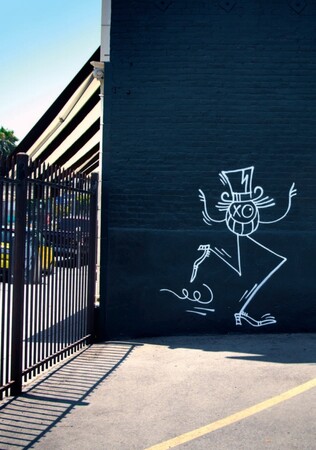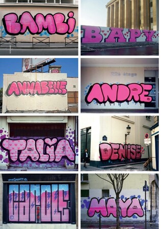 ストリートでは、アンドレはグラフィティ・アーティストの分身である『Mr.A』というタグと、彼のコンセプトである "Love Graffiti "で知られています。『Mr.A』は、満面の笑みとウィンクをした面白い丸顔で、どこにでもついてきて、今では世界中にいます。そしてそれはしばしばピンク色です。- この色は、アンドレのモノクローム・スタイルを除いて、グラフィティの世界ではタブーとされている色なのです。"Love Graffiti "は、愛する人に依頼された人の名前を、その人が住んでいる場所の近くにポップな色で、見落とされないように描いたものです。