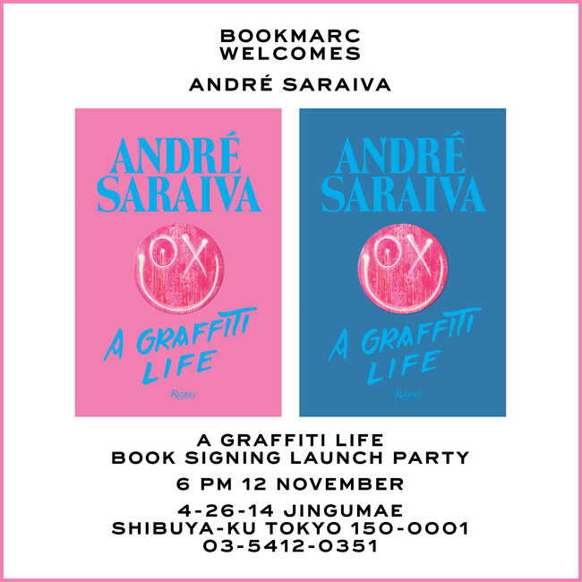 ニューヨーク発ファッションブランド「マーク ジェイコブス」が手掛けるブックストア『BOOKMARC(ブックマーク)』にて、ストリートカルチャー、現代アート、グラフィックデザイン、写真、ファッション、ナイトライフなど、様々な分野でパリを拠点に活躍するアンドレ・サライヴァ待望の初モノグラフ「Andre Saraiva: Graffiti Life」(Rizzoli刊)の出版を記念して、ローンチパーティーとサイン会を開催します。皆様のご来店お待ちしております。