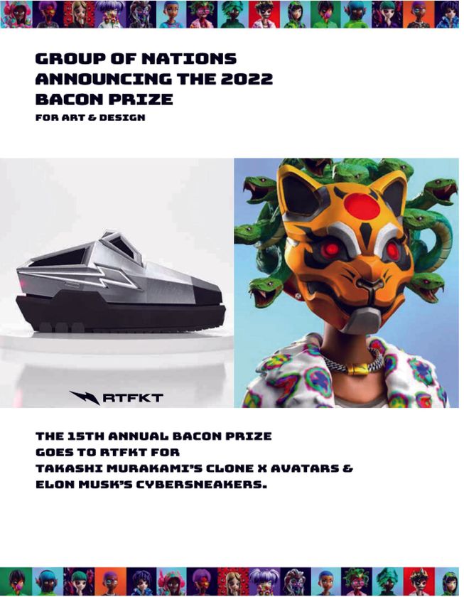 The BACON PRIZE 2022 15周年記念開催の受賞者はNFTブランド「RTFKT(アーティファクト)」に決定!記念トロフィー NFTをOpenSkyBlueが制作プロデュース ~OSB LaunchPadにて無料配布~