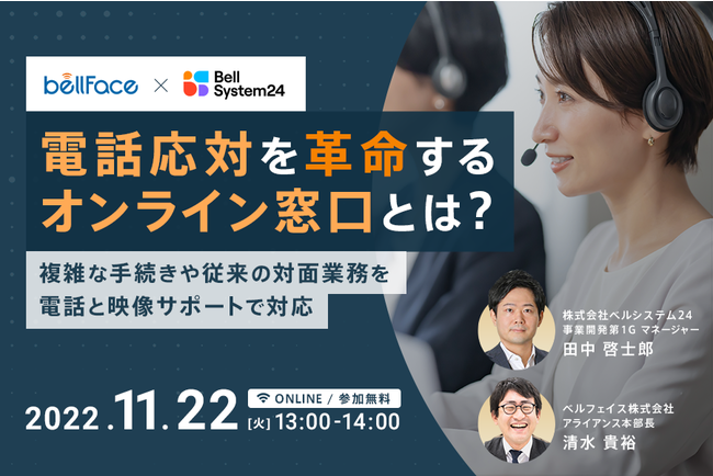 ベルシステム24とベルフェイス、共同オンラインセミナー「電話応対を革命するオンライン窓口とは?」を11月22日(火)開催