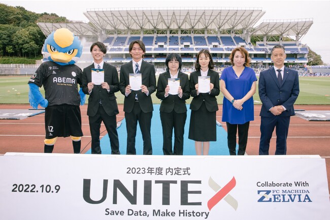 FC町田ゼルビアを運営する株式会社ゼルビア(本社:東京都町田市、代表取締役社長:大友健寿、以下ゼルビア)は、データストレージ製品を提供する株式会社ユニテックス(本社:東京都町田市、代表取締役社長:小杉恵美、以下ユニテックス)に対する採用支援の企画として、10月9日ゼルビアが主催するホームゲームのスタジアムで内定式を実施いたしました。