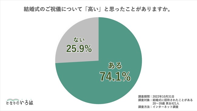 最後に、結婚式に招待されたことがある方に「ご祝儀が高いと思ったことがあるか」を聞いたところ、7割以上(74.1%)が「高いと思ったことがある」と回答しました。