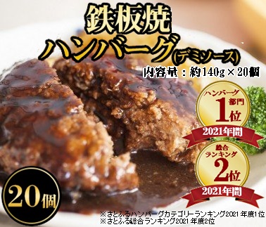 2位 【11月15日より寄付金額改定】鉄板焼ハンバーグ(デミソース)20個セット