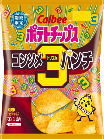 カルビーは、コンビニエンスストア限定の定番商品「コンソメWパンチ」など1978年に誕生したロングセラー商品「ポテトチップス コンソメパンチ」の可能性を追求し、さまざまな商品を発売しております。コンソメ風味を3倍にした「コンソメトリプルパンチ」は、濃い味を望むお客様の声にお応えした商品です。近年は、パッケージや中身を変更しながら、毎年期間限定で発売しています。ストレスを発散したいとき、お酒や炭酸飲料と一緒にお召し上がりいただきたい商品です。