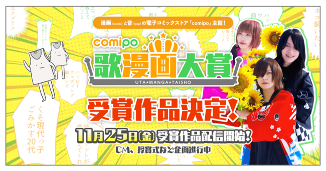 『comipo歌漫画大賞』は、聴いて楽しむマンガアプリ「comipo」が主催する歌と漫画の要素を組み合わせた新機軸の漫画賞です。