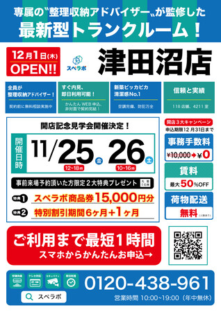 【12月1日(木)オープン】見学から契約、解約まで完全非接触・非対面、お申し込みからご利用まで最短1時間!都内、大阪などにて絶賛運営中のトランクルーム【スペラボ】が千葉県船橋市津田沼駅北口に出店!