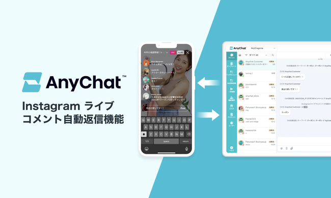 AnyMind Group株式会社(読み:エニーマインドグループ、代表取締役CEO:十河 宏輔、以下「当社」)は、会話型コマースプラット「AnyChat」をInstagramと連携し、「Instagramライブ コメント自動返信機能」の利用が可能となりましたのでお知らせいたします。