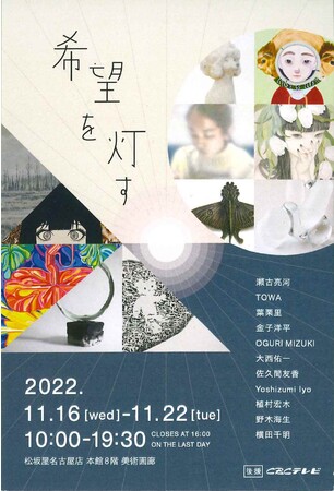 松坂屋名古屋店 本館8階 美術画廊で開かれる「希望を灯す」に卒業生のYoshizumi Iyoさん・教員の佐久間友香さんの作品が展示されます!