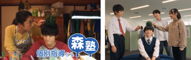 今回、息子の成長を見守っているお母さん役に女優の小池栄子さんを迎え、「森塾」に通うことで学力だけでなく自信もつき、人としてもモリモリ成長していく息子の様子と、息子を頼もしく思うようになる母親の様子をコミカルに描きました。また、子どもたちが「森塾」を通して得た自信を頭上の“森”の広がりで表現するという、斬新かつ独特な演出にも注目です。