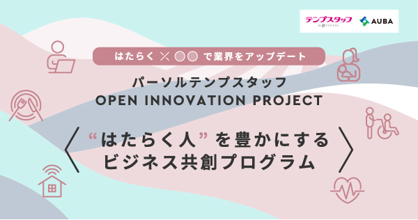 総合人材サービスのパーソルグループで人材派遣・アウトソーシング事業を手掛けるパーソルテンプスタッフ株式会社(本社: 東京都渋谷区、代表取締役社長: 木村 和成、以下パーソルテンプスタッフ)は、日本最大級のオープンイノベーションプラットフォームAUBA(アウバ)を運営するeiicon company(所在地:東京都港区南青山、代表:中村 亜由子)とともに、全国のパートナー企業とのオープンイノベーションを目的とした「“はたらく人”を豊かにするビジネス共創プログラム」を始動。2022年11月14日(月)より、ともにチャレンジしたいビジネス共創のパートナー企業の募集を開始いたしました。