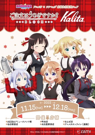 IPを活用したイベント事業・グッズ事業を手掛ける株式会社イーディス(本社:東京都豊島区、代表取締役:森俊平、以下イーディス)は、『ご注文はうさぎですか? BLOOM』×『Kalita』の描き下ろしイラストを使用した商品をアニメガ×ソフマップにて先行販売致します。