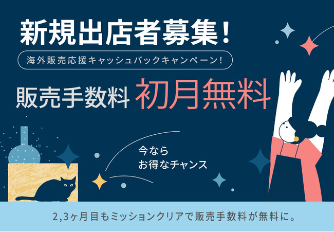海外販売を応援するため、新規出店者手数料無料キャンペーンを実施