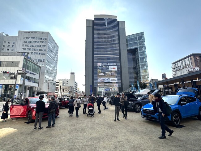 このイベントは『 EV+ Experience 2022 in Toyota City 』と題し、愛知県・岐阜県で開催された「フォーラムエイト・ラリージャパン 2022」期間中の土日2日間、来場者体感型のスペシャルイベントとして開催。ラリージャパンのサービスパークが設置される豊田スタジアムへ向かうメイン導線にある豊田市駅前広場(とよしば、人工芝、GAZA南広場) が舞台になりました。世界選手権であるWRCという“お祭り”を盛り上げるべく、全国から訪れるファンと近隣にお住まい皆さまに「次世代カーに触れて、体感するイベント」を目指しました。