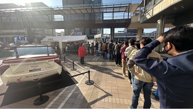 試乗受付は、朝日が眩しい早朝から大勢の方に並んで頂きました。