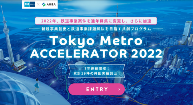 東京地下鉄株式会社(本社:東京都台東区、代表取締役社長:山村 明義、以下「東京メトロ」)では、今年度で7回目の開催となるオープンイノベーションプログラム「Tokyo Metro ACCELERATOR 2022」を実施します。