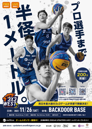 株式会社じげん(本社:東京都港区、代表取締役 社長執行役員CEO:平尾丈、東証プライム:3679、以下じげん)がオーナーを務める3x3(3人制バスケットボール)のプロチーム「ZIGExN UPDATERS.EXE(じげんアップデーターズ)」は、西日本に本拠地を置くチームが集結する大会、『3x3WEST(スリーエックススリーウエスト)』の誘致大会を11月26日(土)に京都府京都市にて開催することをお知らせいたします。
