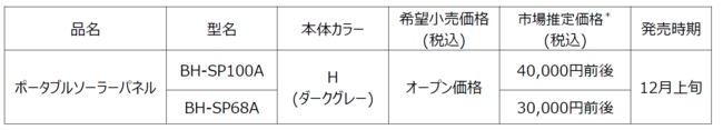 ポータブルソーラーパネル「BH-SP100A」「BH-SP68A」を発売
