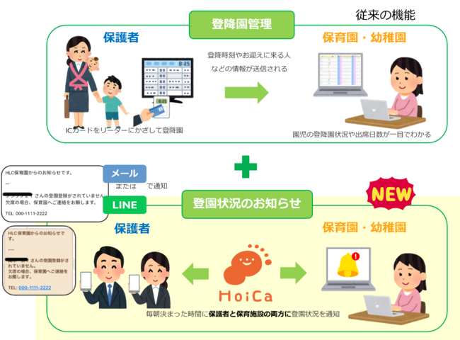 大阪のITスタートアップHappyLifeCreators株式会社 (本社:大阪市淀川区、代表取締役:牧長 心、以下「当社」)は、保育園・幼稚園での事務作業を効率化するサービス「HoiCa(ほいか)」に、園児の車内置き去り事故を防止する登園状況のお知らせ機能を追加しました。