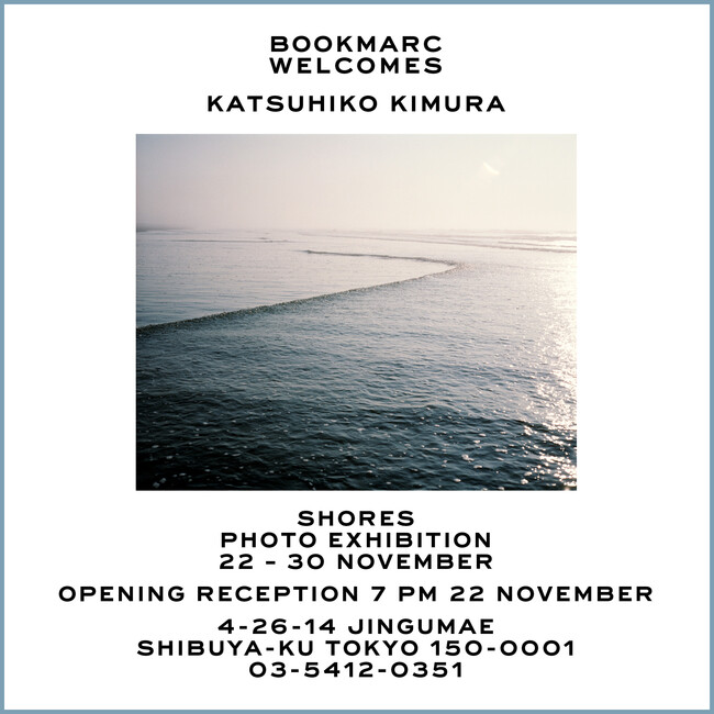 ニューヨーク発ファッションブランド「マーク ジェイコブス」が手掛けるブックストア「BOOKMARC(ブックマーク)」にて、写真家・木邑旭宗(きむら・かつひこ)の私家版写真集『SHORES』の発売を記念して写真展を開催します。本作は九十九里作田浜と下田市吉佐美大浜をミディアムフォーマットのmakina 67で撮影したものです。NYに住んでいたころ、時間ができるとコニーアイランドやロングビーチに足を運んでいたという木邑にとって、海は心が穏やかになり、気持ちをリセットできる場所です。木邑の撮る透明感のある風景は、海が作り出す光景の美しさへの純粋な感動とリスペクトを感じさせ、鑑賞者の心にスッと浸透していきます。本展では銀塩カラープリント約30点を展示販売致します。皆様のご来店をお待ちしております。