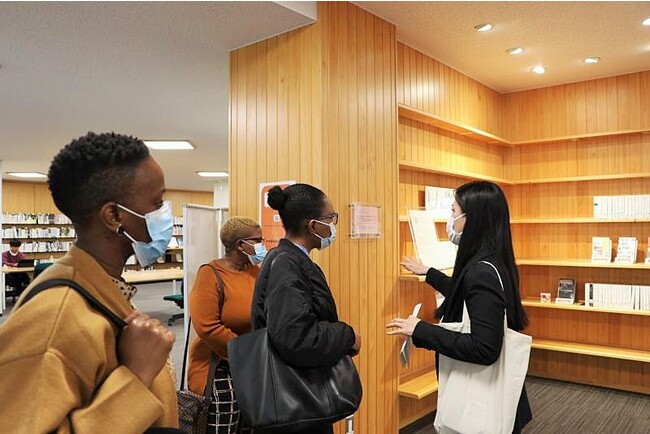 表敬訪問後、若手女性研究者らは本学の附属図書館を訪問。ムラタアカデミアや書庫など図書館の施設を見学しました。