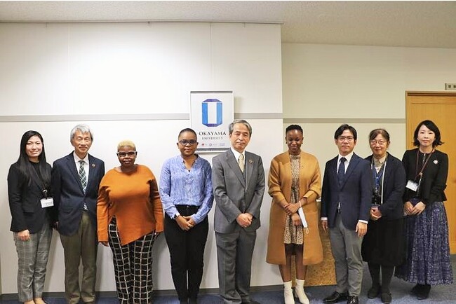 国立大学法人岡山大学(本部:岡山市北区津島中、学長:槇野博史)と国連貿易開発会議(UNCTAD)による「途上国からの若手女性研究者のための共同研究・研修コース:Young Female Scientist Programme in Japan」の第二期となる若手女性研究者3人が2022年11月8日、岡山大学に到着し、槇野博史学長を表敬訪問しました。