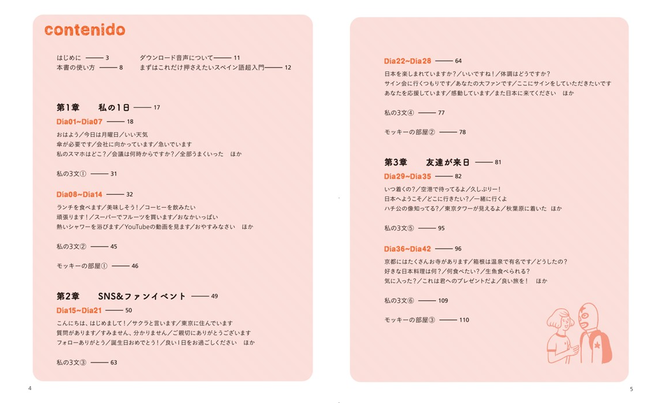 1日に学習する分量はたった3文! 毎日無理なく学習を続けられます。フレーズはどれも短くて声に出しやすい、ナチュラルなものばかり。スペイン語のナレーションはYouTubeでも人気のマルコ・ベルトリオさんと村上サユリさん、日本語のナレーションは著者の元井美貴さんです。