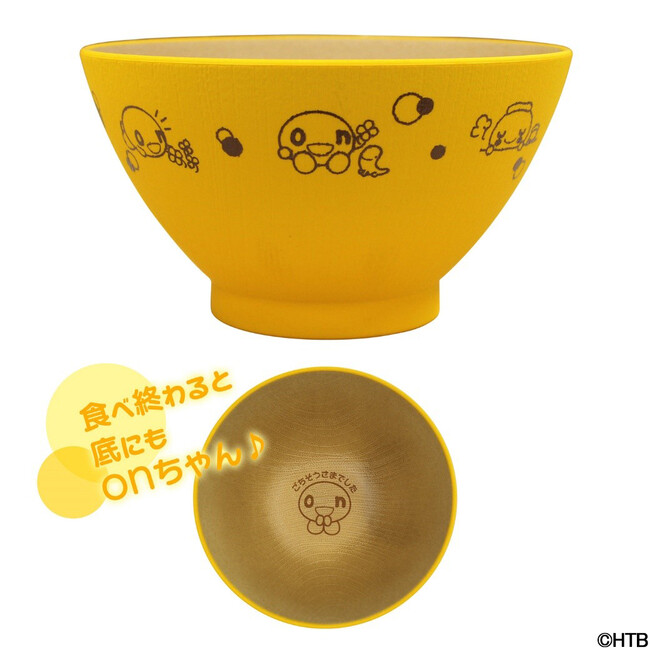 onちゃんのお茶碗が初登場!周りにぐるっとプリントされたonちゃんのイラストは朝起きてから夜眠るまで、元気いっぱいに過ごす「onちゃんの1日」がテーマ。電子レンジや食洗機も使用できるのでとっても使いやすく、割れにくいのでお子さまにもおすすめです。食べ終わると底にも「ごちそうさまでした」のonちゃんが♪毎日のお食事タイムが楽しくなること間違いなしです。