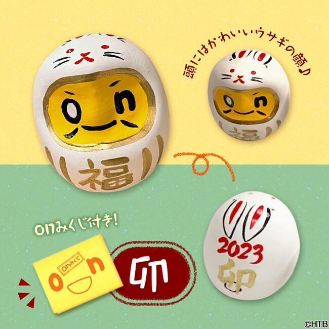 「丑年」「寅年」と続き2023年は「卯年」となります。これまで発売するや、すぐに完売となってきた人気のonちゃん干支ミニだるま。今年も、新年に向けて白いうさぎをまとったonちゃんのミニだるまを発売します。手のひらサイズでとってもキュート!玄関や職場のデスクなどいろんなところに置いて新しい年を迎えましょう!