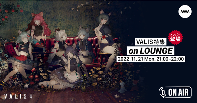 AWA株式会社(本社:東京都港区、代表取締役CEO:冨樫晃己)が運営する、サブスクリプション型(定額制)音楽ストリーミングサービス「AWA(アワ)」は、2022年11月21日(月) 21:00~22:00の1時間に渡り、無料で誰でも参加できるオンライン空間「LOUNGE(ラウンジ)」で、神出鬼没のバーチャルサーカス団としてパフォーマンスを行う、6人組のバーチャルガールズグループ・VALIS(ヴァリス)が音声とチャットで参加するAWAラウンジを開催いたします。