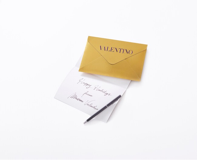 ヴァレンティノ銀座、ヴァレンティノ表参道限定では、期間中に商品を購入するとその場でクリスマスメッセージのカリグラフィーを入れたグリーティングカードをプレゼントします。