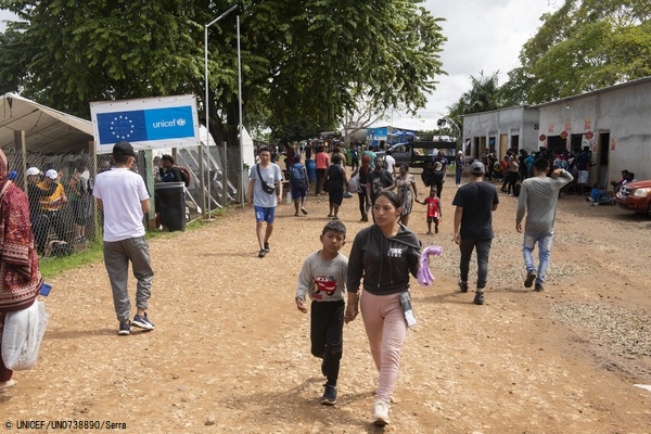 ラハス・ブランカスにある移民受け入れセンターを訪れたユニセフ事務局次長のハンナン・スリーマンは、次のように述べました。「暴力と貧困、そしてより良い生活への渇望に駆り立てられて、人々は子どもを連れて住処を離れ、ダリエン地峡のような過酷な地で脅威に直面するのです。移動する彼らの固有のニーズに応じた、基礎的サービスが必要となっています。しかしパナマでは、他の多くの国々と同様に、移民の子どもたちの数が急増し、そのサービスへの需要が提供能力を大幅に超えてしまっています。ユニセフはすべての政府に対し、出身国にかかわらず、すべての移民の子どもたちを保護するための行動をとるよう求めます。子どもたちは、基本的な安全や福祉が危険にさらされている状況に、決して連れ戻されてはなりません」。