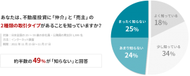 (1)約49%の人が、不動産投資に「仲介」と「売主」の2種類の取引タイプがあることを認知していない