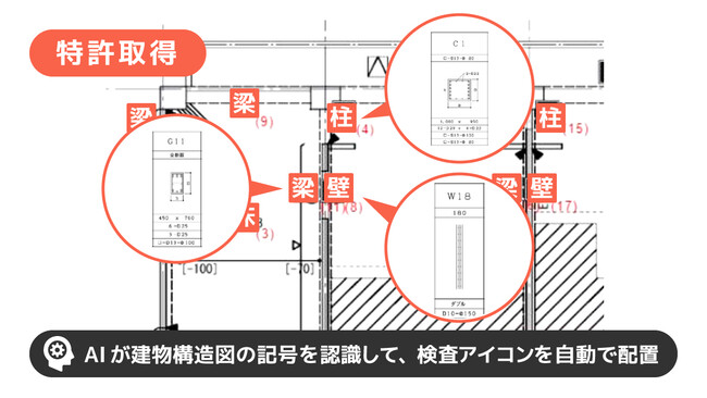 スパイダープラス、業界初!基本特許「建物構造図アイコン配置AI」を取得。建築図面をAIが読み取り、「柱」「壁」などの検査アイコンを自動配置が可能